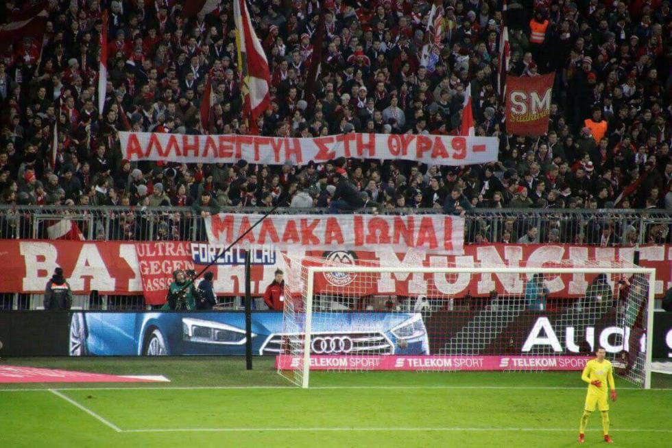 «Χαιρετίσματα από τους οργανωμένους της Μπάγερν Μονάχου στον Ιωνά και σε όσους στηρίζουν και ψήφισαν τα μέτρα καταστολής και φακελώματος.