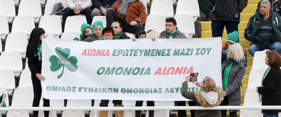 Επί ευκαιρίας του Αγίου Βαλεντίνου ο Όμιλος Γυναικών Ομόνοιας Λευκωσίας σήκωσε πανό που έγραφε: «Αιώνια ερωτευμένες μαζί σου, Ομόνοια αιώνια».