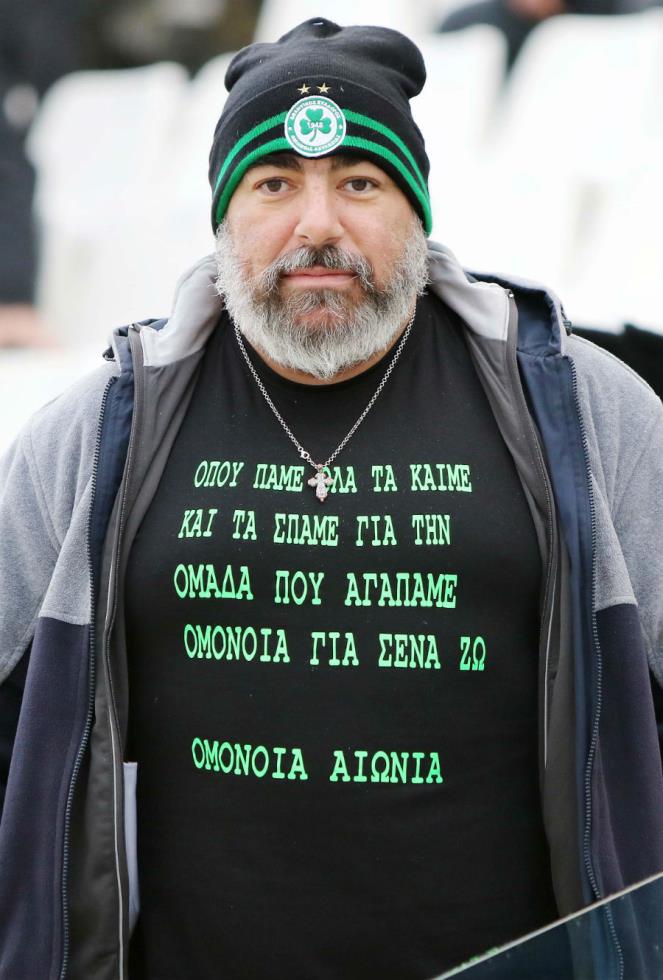 Επιπλέον, ο κύριος στην πιο κάτω φωτογραφία φόρεσε φανέλα στο οποίο αναγραφόταν ένα ποίημα για την Ομόνοια.