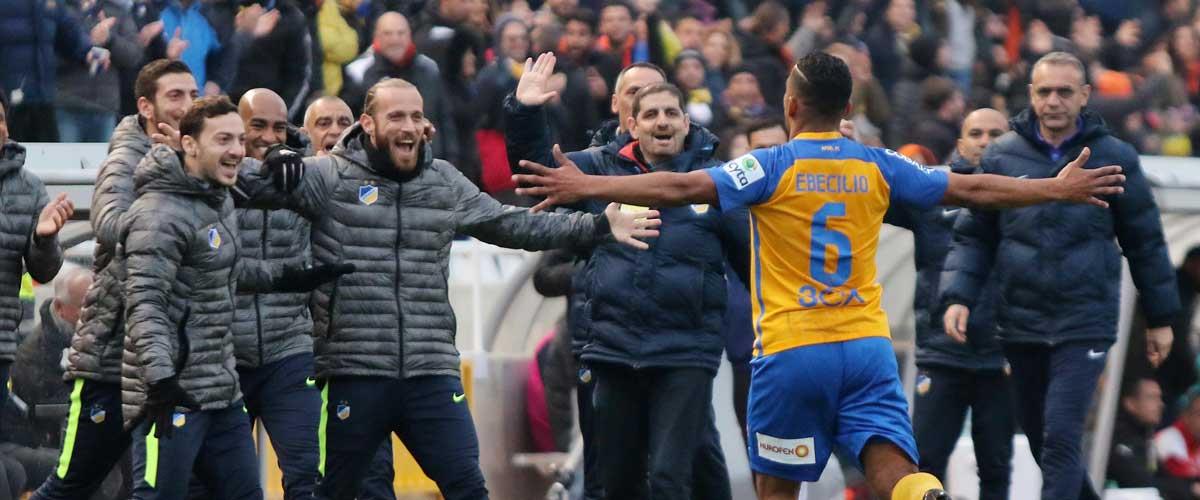 Ο Λορέντζο Εμπεσίλιο με δύο γκολ ήταν ο μεγάλος πρωταγωνιστής στο ντέρμπι αιωνίων ΑΠΟΕΛ-Ομόνοιας. Ο Ολλανδός μέσος με δύο απίστευτης ομορφιάς τέρματα έγειρε την πλάστιγγα υπέρ των «γαλαζοκιτρίνων».