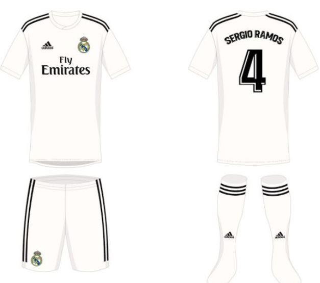 Η εντός έδρας εμφάνιση της Ρεάλ Μαδρίτης για τη σεζόν 2018-2019, σύμφωνα με τις φωτογραφίες που διέρρευσαν στο ίντερνετ, θα έχει το παραδοσιακό λευκό χρώμα, με κυκλική λαιμόκοψη και μαύρες γραμμές στους ώμους.
