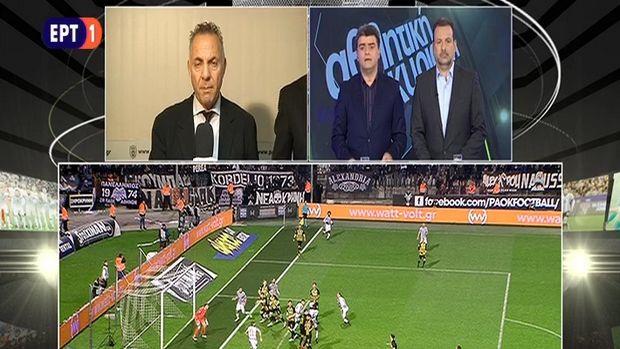 Ο Γιώργος Μίνος πήρε την πάσα και απάντησε στους δύο ανθρώπους του ποδοσφαίρου, εκφράζοντας, όπως πάντα, τη θέση του ΠΑΟΚ, με τον κεντρικό παρουσιαστή και διευθυντή του αθλητικού τμήματος της ΕΡΤ, Γιώργο Λυκουρόπουλο, να τον επαναφέρει στη θέση του και μάλιστα με πολύ αυστηρή παρατήρηση.