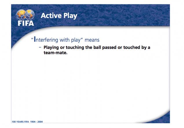 Με απλά λόγια θα προσπαθήσουμε να κάνουμε πιστή μετάφραση του επίσημου κανονισμού της FIFA σε ότι αφορά το οφσάιντ και ειδικά στις διατάξεις, όπου αναφέρεται το περίφημο Interfering an opponent και Interfering with play. Αν δηλαδή ο ευρισκόμενος σε θέση οφσάιντ παίκτης επηρεάζει έναν αντίπαλο ή αν επηρεάζει την φάση.