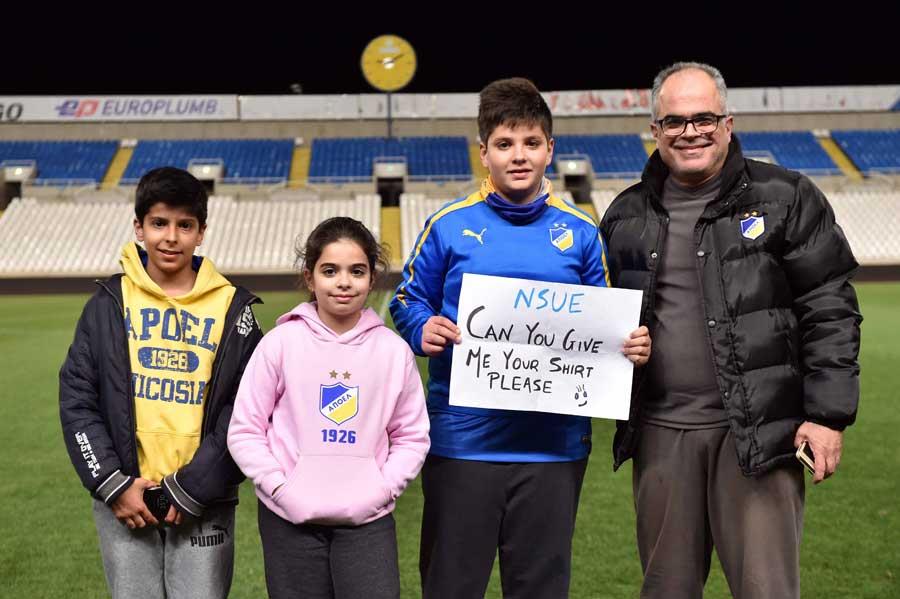 Μετά το τέλος της αναμέτρησης ο φίλος του ΑΠΟΕΛ μαζί με τον πατέρα του μπήκαν στο γήπεδο με άδεια της διοίκησης του ΑΠΟΕΛ και παρέλαβε φανέλα υπογεγραμμένη από τον Νσούε.