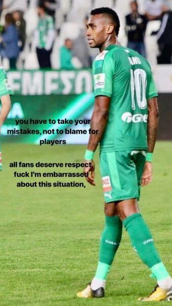 «Πρέπει να αναλαμβάνεις τα λάθη σου όχι να φταις τους παίκτες. Όλοι οι οπαδοί αξίζουν σεβασμό. Γα@@@ο ντρέπομαι γι' αυτή την κατάσταση».