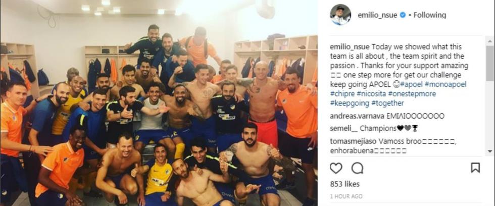 Οι γαλαζοκίτρινοι συνέχισαν τα γλέντια στα αποδυτήρια, από όπου ο Εμίλιο Νσούε δημοσίευσε αναμνηστική φωτογραφία μετά τη μεγάλη νίκη.