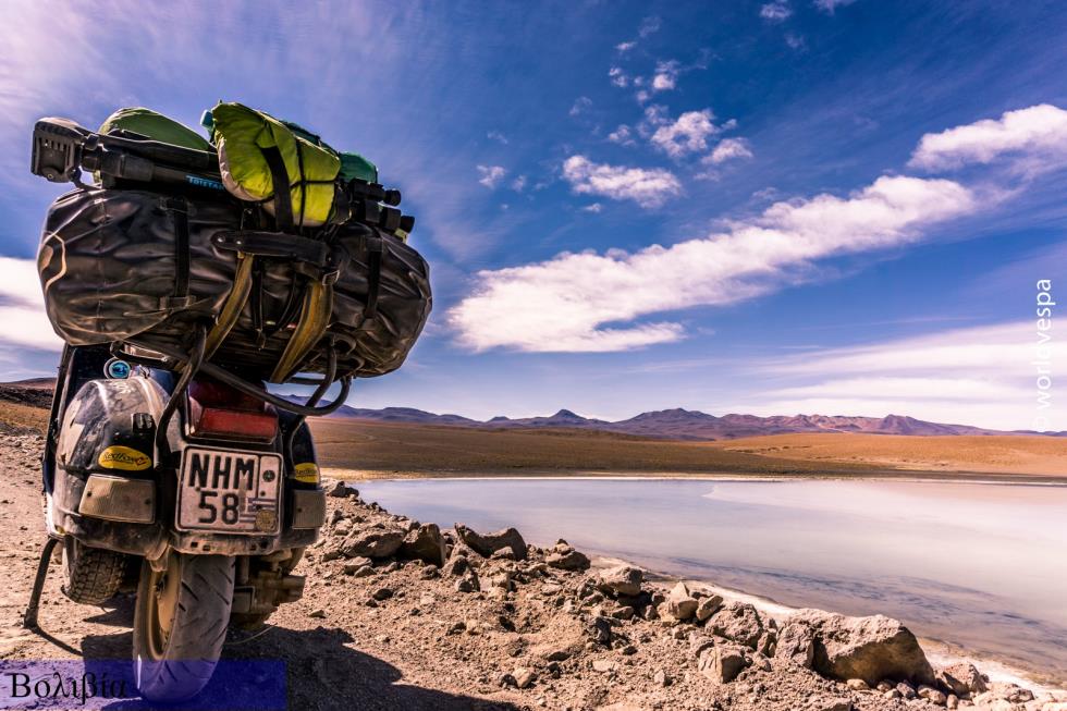 Είμαστε ο Στέργιος Γκόγκος και η Αλεξάνδρα Φεφοπούλου, ή αλλιώς “worldvespa” και γυρνάμε τον κόσμο ταξιδεύοντας πάνω σε μια Vespa PX200. Η ιστορία μας ξεκίνησε το 2013 τελείως ξεχωριστά, αφού τότε ακόμη δε γνωριζόμασταν. Για διαφορετικούς λόγους και με άλλα σχέδια ο καθένας, φύγαμε απ΄ την Ελλάδα. Συναντηθήκαμε για πρώτη φορά τυχαία στη Λαϊκή Δημοκρατία του Κονγκό και λίγο καιρό μετά, ξεκινήσαμε ένα “δοκιμαστικό” στη Νότια Αφρική και το Λεσότο. Η Vespa κατάφερε να σηκώσει τα καινούρια βάρη κι εμείς ανακαλύψαμε πως είμαστε “δυνατή” ομάδα! Από τότε (Δεκέμβριος, 2014) ταξιδεύουμε μαζί και σκοπός μας είναι να μη σταματήσουμε αν δε δούμε και την πιο απομακρυσμένη γωνιά της γης.