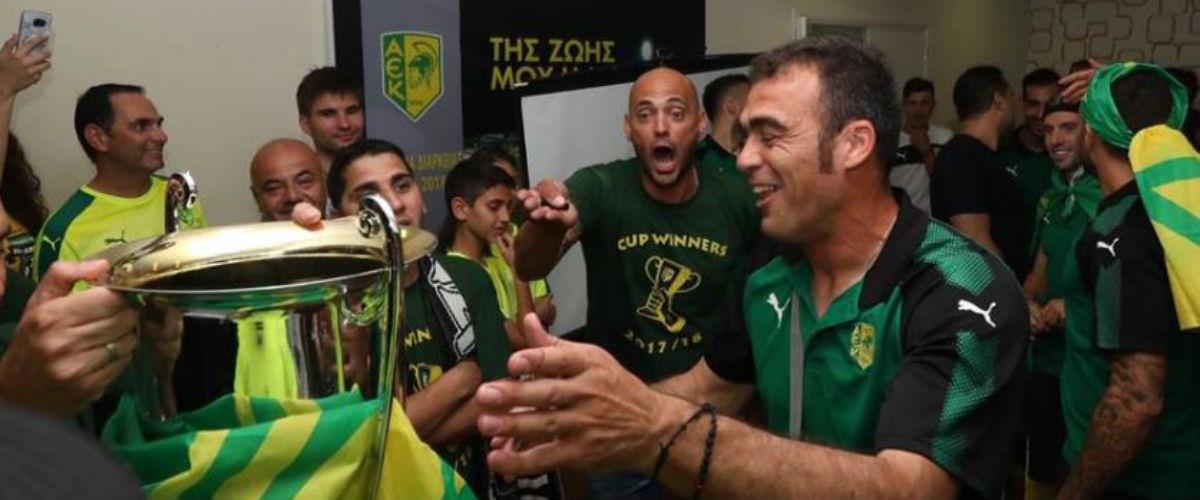 Ο Αντώνης Γιωργαλλίδης πανηγύρισε το πέμπτο κύπελλο στην καριέρα του (προηγήθηκαν δύο με την Ανόρθωση και ισάριθμα με την Ομόνοια) μετά την επικράτηση της ΑΕΚ επί του Απόλλωνα στον τελικό.