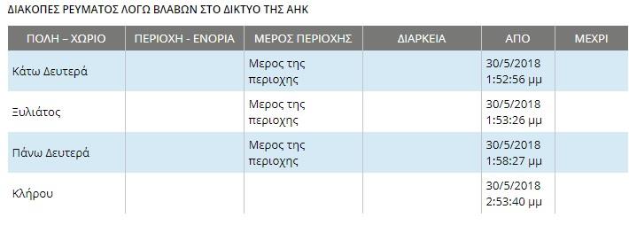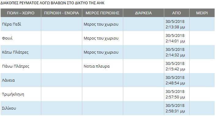 Δείτε τις περιοχές που έχουν μείνει χωρίς ρεύμα.