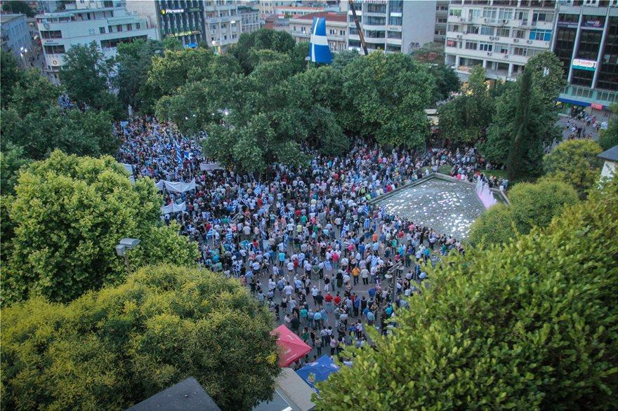Συνθήματα ακούστηκαν κατά του Αλέξη Τσίπρα, όταν το όνομά του αναφέρθηκε από τους ομιλητές. Μεταξύ άλλων ομιλητών, ο Λάζαρος Κυρίζογλου, δήμαρχος Αμπελοκήπων-Μενεμένης, επιτέθηκε στην κυβέρνηση, τονίζοντας ότι παραχαράσσει την ιστορία, όταν λέει ότι η κυβέρνηση Καραμανλή είχε αναγνωρίσει μακεδονική γλώσσα, το 1977.