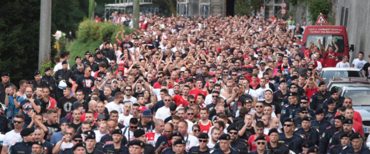Οι εκτιμήσεις κάνουν λόγο για πάνω από 10.000 Σέρβους στο γήπεδο, με την πορεία των οπαδών του Ερυθρού Αστέρα προς το γήπεδο να είναι εντυπωσιακή.