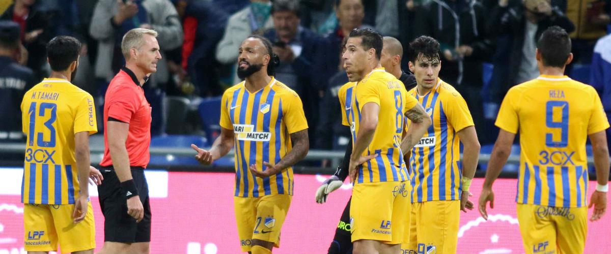 Σε δύο περιπτώσεις στο πρώτο ημίχρονο ο ΑΠΟΕΛ δικαιούται να νιώθει αδικία για τις αποφάσεις του διαιτητή της αναμέτρησης με την Αστάνα, Γιόκοπ Κέλετ, ο οποίος με τις αποφάσεις του ξεσήκωσε τόσο τους ποδοσφαιριστές στον αγωνιστικό χώρο, όσο και όσους βρίσκονταν στον πάγκο της ομάδας.