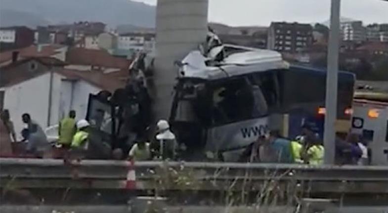Τουλάχιστον πέντε άνθρωποι έχασαν τη ζωή τους και είκοσι τραυματίστηκαν σήμερα το μεσημέρι στη βόρεια Ισπανία σε τροχαίο όταν λεωφορείο σφηνώθηκε στο υποστύλωμα γέφυρας, έγινε σήμερα γνωστό από τις υπηρεσίες εκτάκτων καταστάσεων.