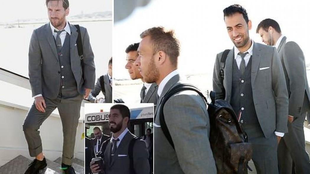 Ο Λιονέλ Μέσι και οι συμπαίκτες του έμοιαζαν πραγματικά με μοντέλα, καθώς ήταν ντυμένοι στην... πένα, παρά το γεγονός βέβαια ότι η συγκεκριμένη αμφίεση δεν ενδείκνυται για αεροπορικό ταξίδι.