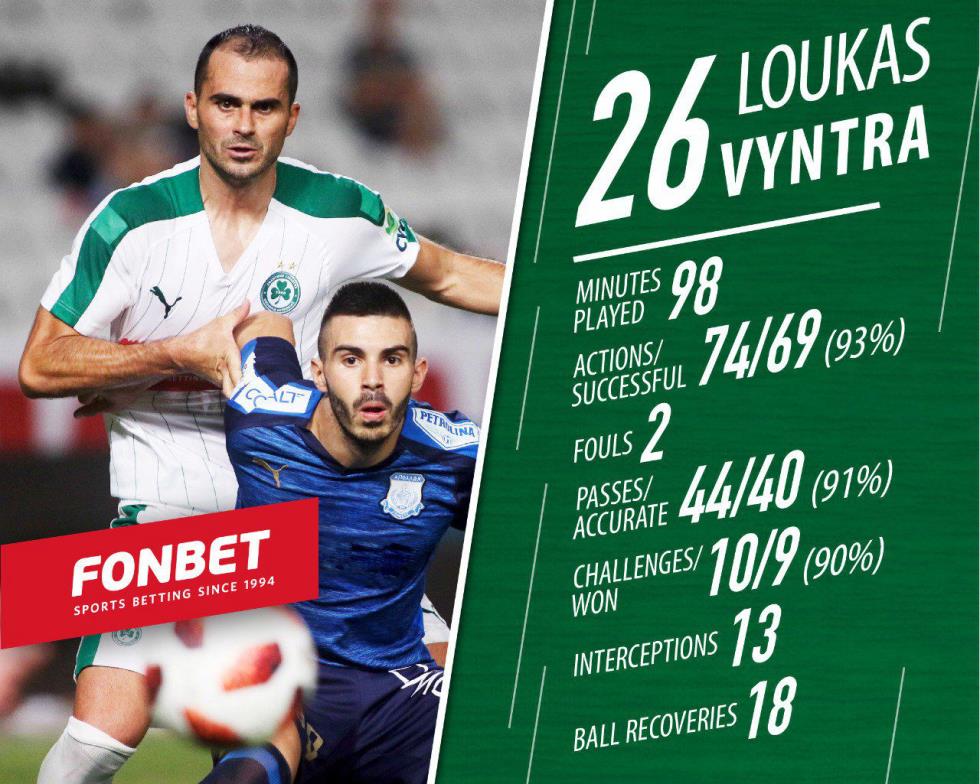 Tα στατιστικά του Λούκα Βύντρα στο παιχνίδι με τον Απόλλωνα δημοσιεύει η επίσημη Ομόνοια.