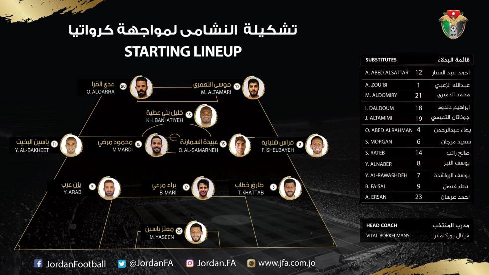 Στην αρχική ενδεκάδα της Ιορδανίας για το φιλικό κόντρα στη φιναλίστ του Μουντιάλ, Κροατία βρέθηκε ο ποδοσφαιριστής του ΑΠΟΕΛ, Μούσα Αλ Τάμαρι.