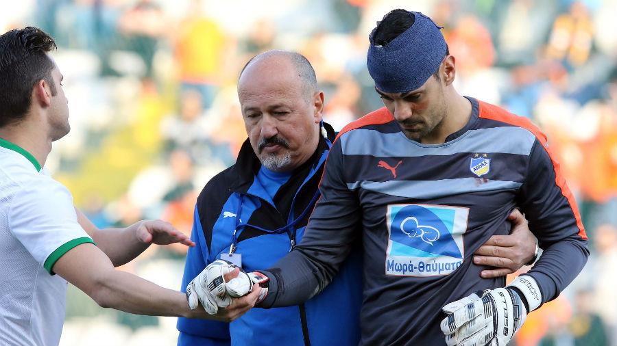 Σύμφωνα με την πρώτη εκτίμηση, είχε θλαστικό τραύμα στο κεφάλι και για παν ενδεχόμενο κρίθηκε ορθότερο να μεταβεί στο νοσοκομείο μετά την αποχώρησή του από το γήπεδο.