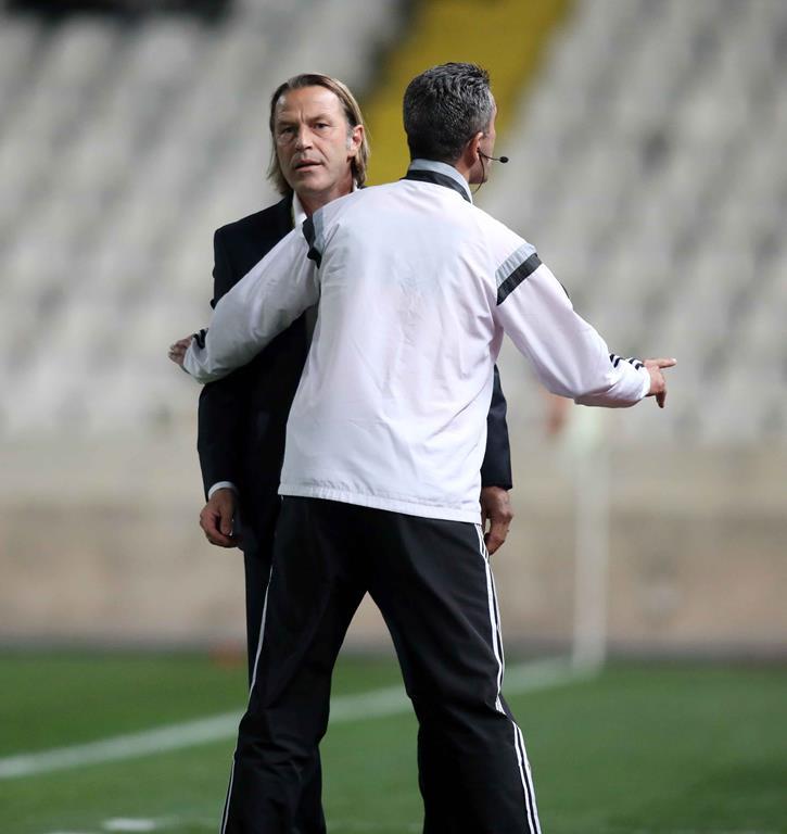 Συγκεκριμένα, μετά την υπόδειξη του πρώτου πέναλτι στο παιχνίδι, οι φιλοξενούμενοι διαμαρτυρήθηκαν έντονα για την απόφαση του διαιτητή, με τους Σωφρόνη και Τραμετσάνι να τα λένε από τους πάγκους σε έντονο ύφος.