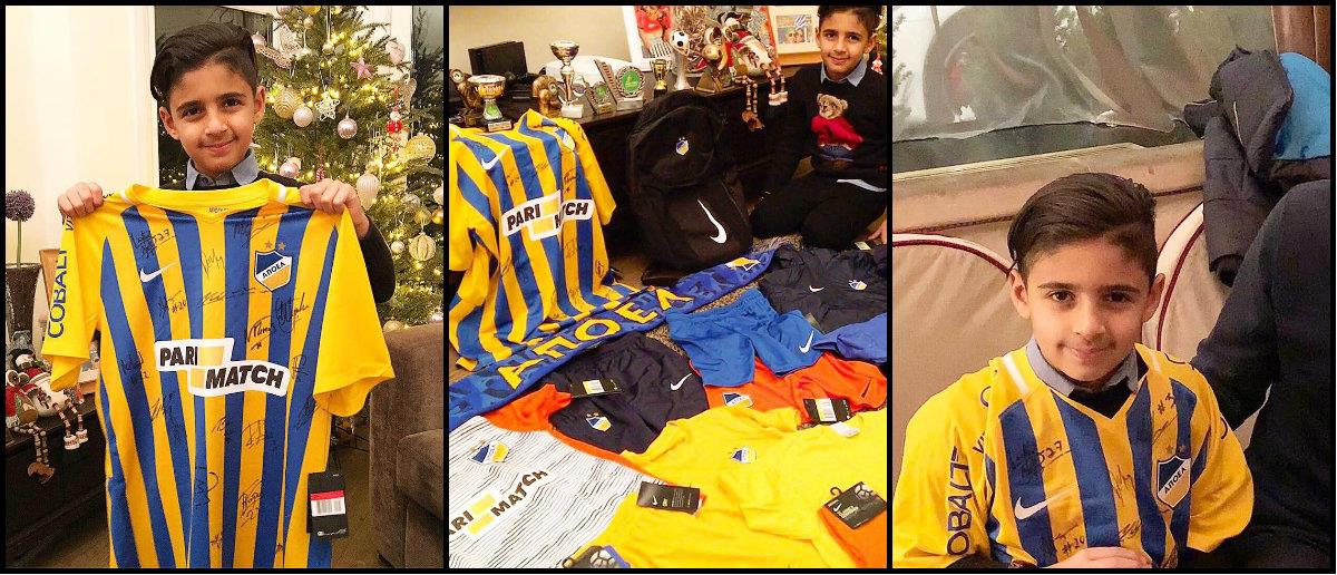 Ο νεαρός Μιχάλης ευχαρίστησε άμεσα τους γαλαζοκίτρινους με ανάρτησή του στο Twitter. «Ευχαριστώ πολύ τον ΑΠΟΕΛ για την υπογραμμένη φανέλα αλλά και τη στολή της ομάδας για την προπόνηση. Μου αρέσουν πάρα πολύ!»