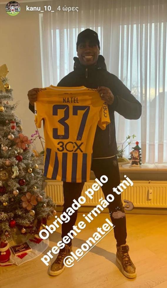 O ποδοσφαιριστής του ΑΠΟΕΛ παρέδωσε τη γαλαζοκίτρινη φανέλα του και ο Κανού την πόσταρε στα μέσα κοινωνικής δικτύωσης ποζάροντας με καμάρι και ευχαριστώντας τον φίλο του για το δώρο.