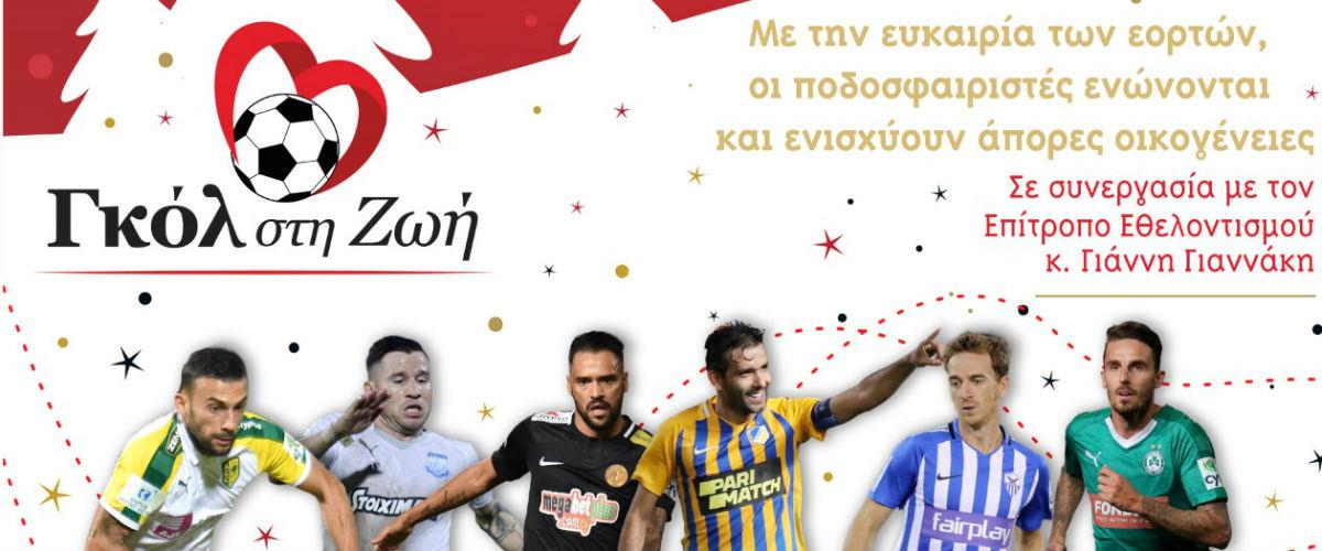 Mε την ευκαιρία των εορτών οι ποδοσφαιριστές – μέλη του «Γκολ στη Ζωή» ενώνονται και ενισχύουν άπορες οικογένειες, σε μια αξιέπαινη κίνηση που αναδεικνύει το κοινωνικό πρόσωπο του ποδοσφαίρου.