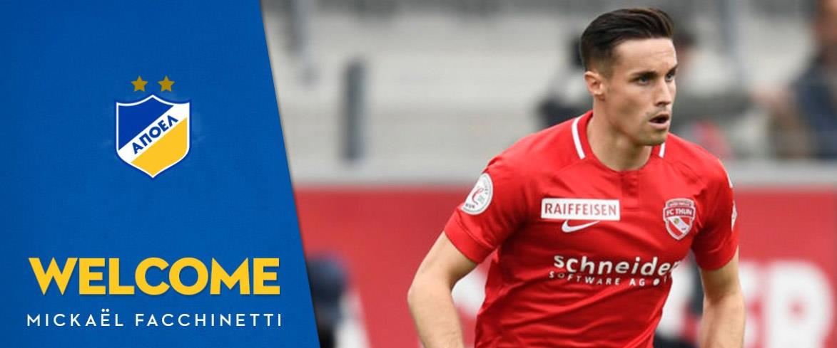 Η εταιρεία ΑΠΟΕΛ ΠΟΔΟΣΦΑΙΡΟ (ΔΗΜΟΣΙΑ) ΛΤΔ ανακοινώνει τη σύναψη συμφωνίας με την FC Thun για μετεγγραφή του ποδοσφαιριστή Mickaël Facchinetti στην ομάδα μας.