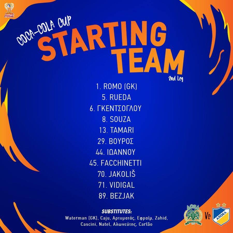 Με τα τέσσερα μεταγραφικά αποκτήματα Ιανουαρίου παρατάσσει ο Πάολο Τραμετσάνι τον ΑΠΟΕΛ στον επαναληπτικό αγώνα κόντρα στη Δόξα στο Μακάρειο Στάδιο. Οι γαλαζοκίτρινοι είχαν επικρατήσει με 2-1 στον πρώτο αγώνα που έγινε στο ΓΣΠ.