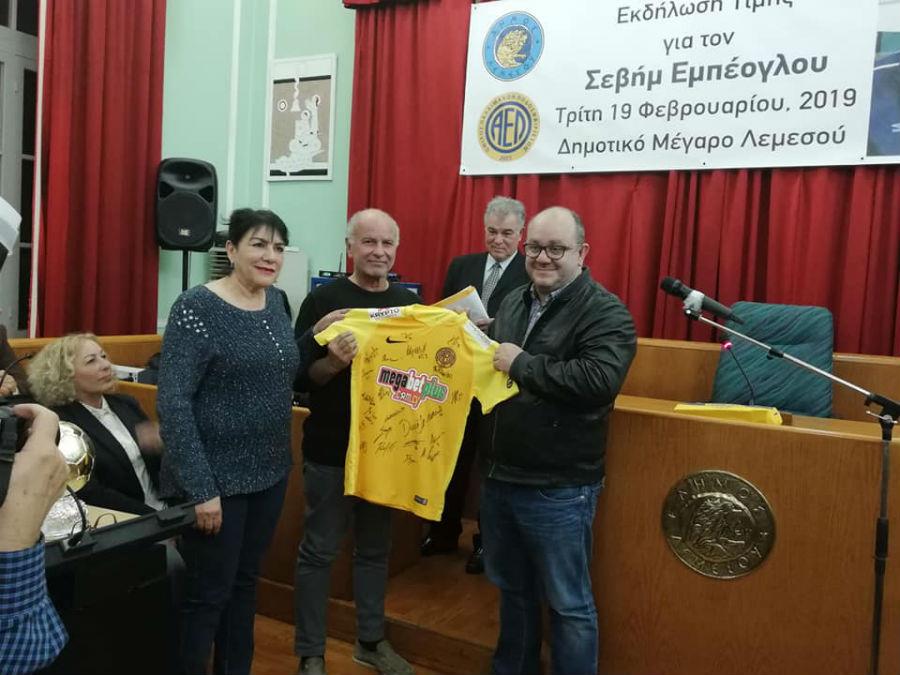 Στην εκδήλωση μίλησαν ο πρώην αρχηγός της ΑΕΛ, Επίτιμος Πρόεδρος του Ομίλου Παλαίμαχων Ποδοσφαιριστών του Σωματείου ΑΕΛ, Πανίκος Παπαδόπουλος και ο πρόεδρος της Επιτροπής Νεολαίας και Αθλητισμού του Δήμου Λεμεσού, Λοΐζος Μαυρουδής. Για τον τιμώμενο μίλησαν επίσης οι συμπαίκτης του Ανδρέας Παπαδήμας και Πανίκος Κρυστάλλης, ενώ το λόγο πήρε και ο Πρόεδρος του ΚΟΑ Ανδρέας Μιχαηλίδης. Η οικογένεια του Σεβήμ Εμπέογλου παρέλαβε τιμητικές πλακέτες καθώς και μια φανέλα της ΑΕΛ με τις υπογραφές των ποδοσφαιριστών της.