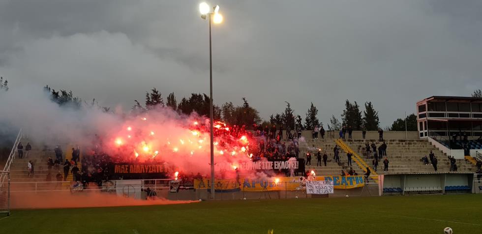 Οι φίλοι των πρωταθλητών κατέφτασαν από νωρίς και έπιασαν θέσεις στο γήπεδο της ΠΑΕΕΚ, όπου στις 17:30 ξεκίνησε η (ανοικτή) προπόνηση των «γαλαζοκιτρίνων», και με τα συνθήματα και τα πυροτεχνήματά τους έδωσαν άλλο χρώμα στο τελευταίο στάδιο της προετοιμασίας για το ντέρμπι με την αιώνια αντίπαλο.