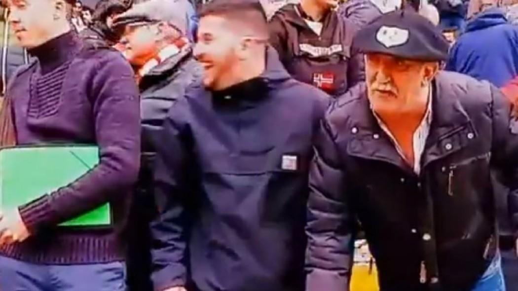 Imágenes de @vamos. Gravísimos insultos a Marcelino. Una puñetera vergüenza. Ese señor de la boina y su colega, aparte de no tener muy claros los tiempos verbales, no tienen cabida en un campo de fútbol. pic.twitter.com/oFDSyHIkZS