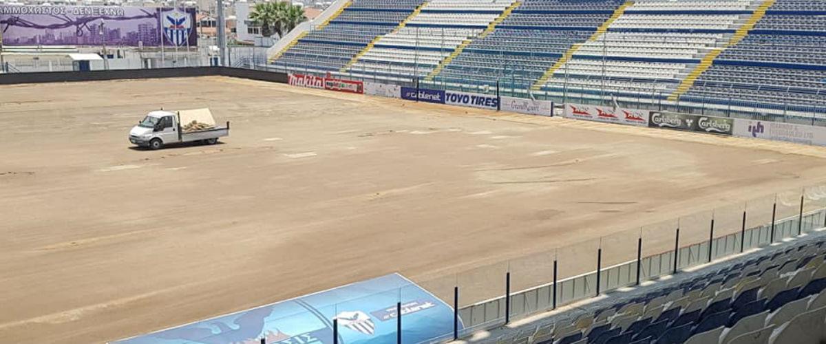 Σε εξέλιξη βρίσκονται τα βελτιωτικά έργα για ανακατασκευή του χορτοτάπητα στο Στάδιο Αντώνης Παπαδόπουλος.