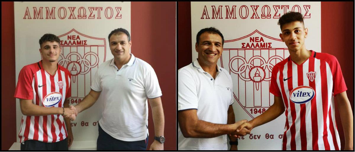 Την έναρξη της συνεργασίας με τους νεαρούς ποδοσφαιριστές Δημήτρη Χρυσοστόμου και Αντρέα Χρίστου, οι οποίοι υπέγραψαν το πρώτο τους επαγγελματικό συμβόλαιο ανακοίνωσε η Νέα Σαλαμίνα.