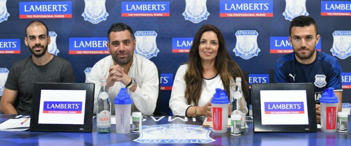 Η εταιρεία Βαρνάβας Χατζηπαναγής ΛΤΔ (VHP Ltd), αποκλειστικός αντιπρόσωπος της εταιρείας Lamberts στην Κύπρο, είναι στην ευχάριστη θέση να ανακοινώσει τη συνεργασία της με τον Απόλλωνα Λεμεσού ως ο επίσημος χορηγός αθλητικής διατροφής.