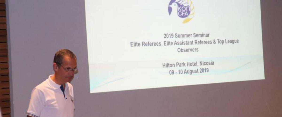 Ο Πρόεδρος της Επιτροπής Διαιτησίας Μπερτράντ Λαγιέκ μίλησε το πρωί της Παρασκευής στους διαιτητές πριν την έναρξη του Ετήσιου Σεμιναρίου Διαιτησίας για διαιτητές και βοηθούς διαιτητές κατηγορίας Elite και Premier.