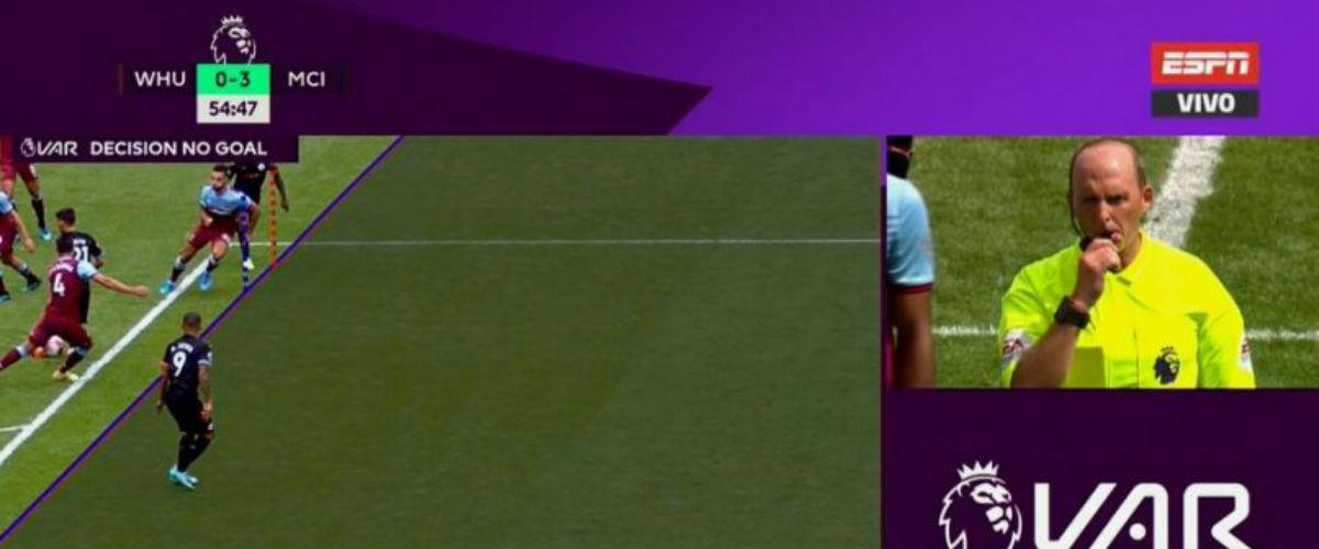 Η Μάντσεστερ Σίτι είδε το VAR να της ακυρώνει το τρίτο της γκολ απέναντι στη Γουέστ Χαμ στο Λονδίνο αφού προεξείχε το χέρι του Ραχίμ Στέρλινγκ στην κάθετη που πήρε από τον Νταβίντ Σίλβα προτού «σερβίρει» στον Γκάμπριελ Ζέσους!