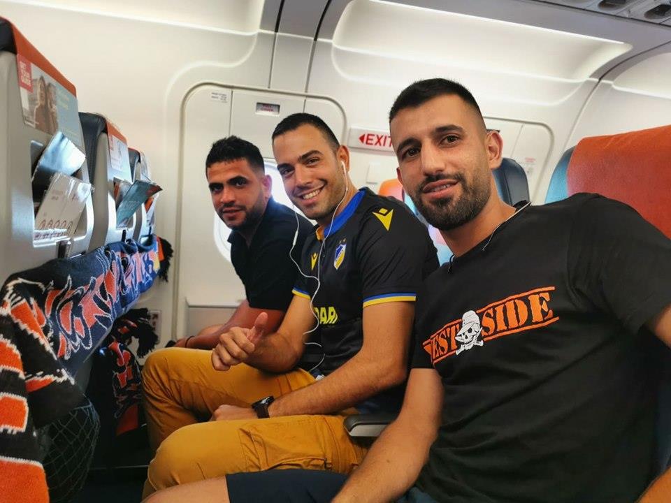 Όπως βλέπετε από τα βίντεο και τις φωτογραφίες που εξασφάλισε η OMADA, η οποία βρίσκεται στην καρδιά της Ολλανδίας, οι φίλοι του ΑΠΟΕΛ, φανερά αισιόδοξοι, φωνάζουν συνθήματα στους δρόμους της πρωτεύουσας, ενώ λίγες ώρες πριν... έντυσαν το αεροπλάνο με κασκόλ των γαλαζοκιτρίνων.