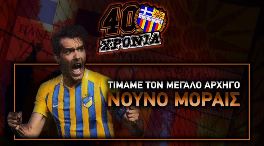 Στη μεγάλη γιορτή του ΑΠΟΕΛ μας, στον Αρχάγγελο το Σάββατο 5 Οκτωβρίου, θα μας δωθεί η ευκαιρία να τιμήσουμε όπως του αξίζει, τον μεγάλο εμβληματικό αρχηγό Νούνο Μοράις. Πρόκειται για τον ποδοσφαιριστή με τα περισσότερα λεπτά συμμετοχής στην ιστορία του ΘΡΥΛΟΥ και αναμφισβήτητα έναν από τους πολυτιμότερους αθλητές της ομάδας μας από το 1926 μέχρι σήμερα. Ο μεγάλος κόσμος του ΑΠΟΕΛ θα δείξει την ημέρα εκείνη την αγάπη που τρέφει για τον μεγάλο μας αρχηγό.