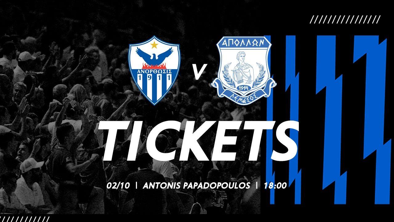 Εισιτήρια θα προπωλούνται και στο Apollon Official Store, μέχρι τις 15:00.