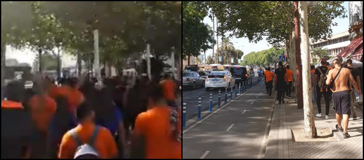 Οι πορτοκαλί που ταξίδεψαν στην Ισπανία και θα βρεθούν στο πλευρό της ομάδας, άρχισαν το δικό τους γλέντι στους δρόμους της πόλης, λίγες ώρες πριν τη σέντρα, με τα δικά τους συνθήματα.