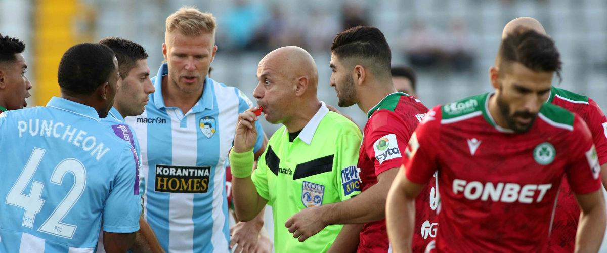 Χωρίς πολλά φάουλ ολοκληρώθηκε το πρώτο 45λεπτο, με τον Λεόντιο Τράττο να δείχνει μόνο μια κίτρινη κάρτα στον Κέβιν Λαφράνς, στον αγώνα της Πάφος FC με την Ομόνοια.