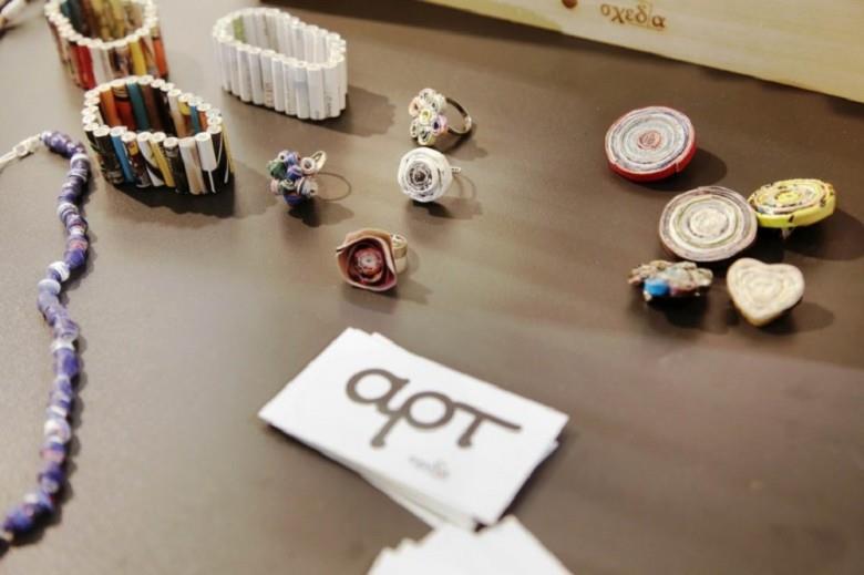 Από την μια, πωλούνται αντικείμενα, τα οποία προηγουμένως είχαν ανακυκλωθεί, από παλιά τεύχη της «Σχεδίας», τα οποία έμειναν απούλητα. Τα συγκεκριμένα προϊόντα, είναι από αντικείμενα μέχρι και κοσμήματα.