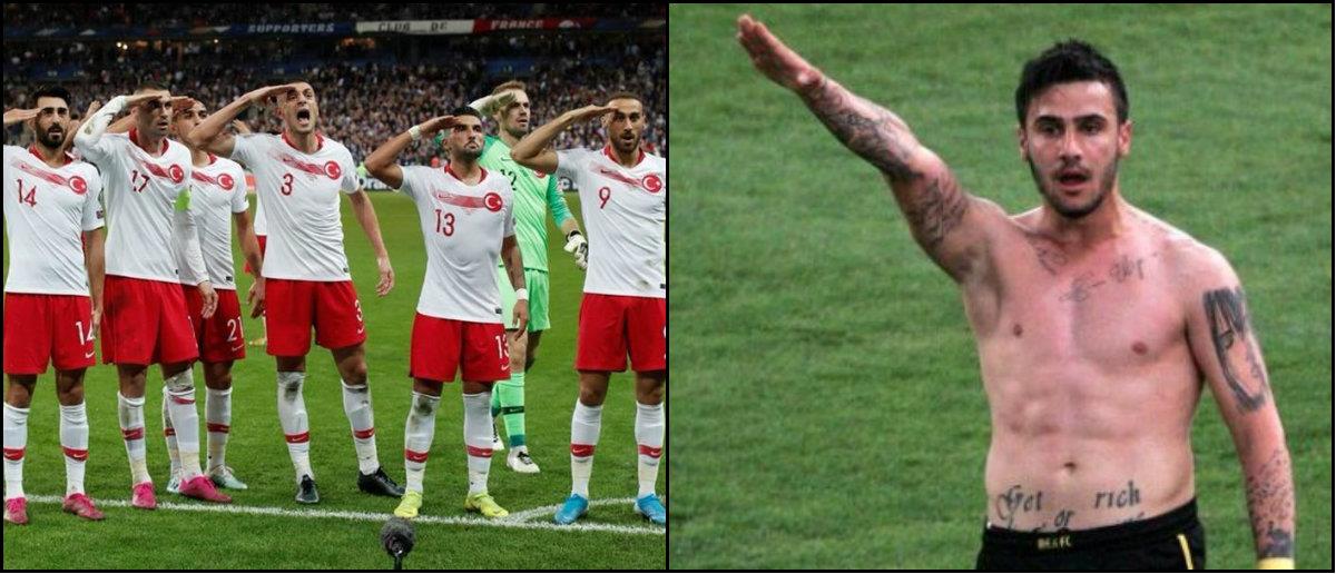 Την ώρα που ο τουρκικός στρατός θερίζει αμάχους στη Συρία, οι ποδοσφαιριστές της εθνικής Τουρκίας νικούν την Αλβανία και πανηγυρίζουν χαιρετώντας στρατιωτικά. Μια ενέργεια που έφερε έντονες αντιδράσεις σε όλο τον κόσμο, με τους ποδοσφαιριστές της Εθνικής Τουρκίας να δέχονται έντονες κατακρίσεις.