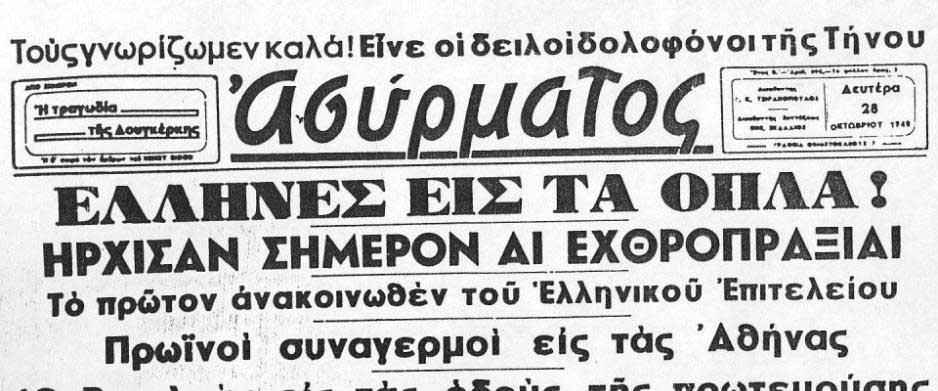Προσκαλείστε στους εορτασμούς της εθνικής επετείου της 28ης Οκτωβρίου 1940, που διοργανώνει το Σωματείο μας σε συνεργασία με την Ένωση Αγωνιστών ΕΟΚΑ 1955-59 Αμμοχώστου, στην αίθουσα «Κυριάκος Θεοχάρους» στις εγκαταστάσεις του σταδίου «Αντώνης Παπαδόπουλος», στη Λάρνακα την Πέμπτη, 24 Οκτωβρίου, στις 19:00.
