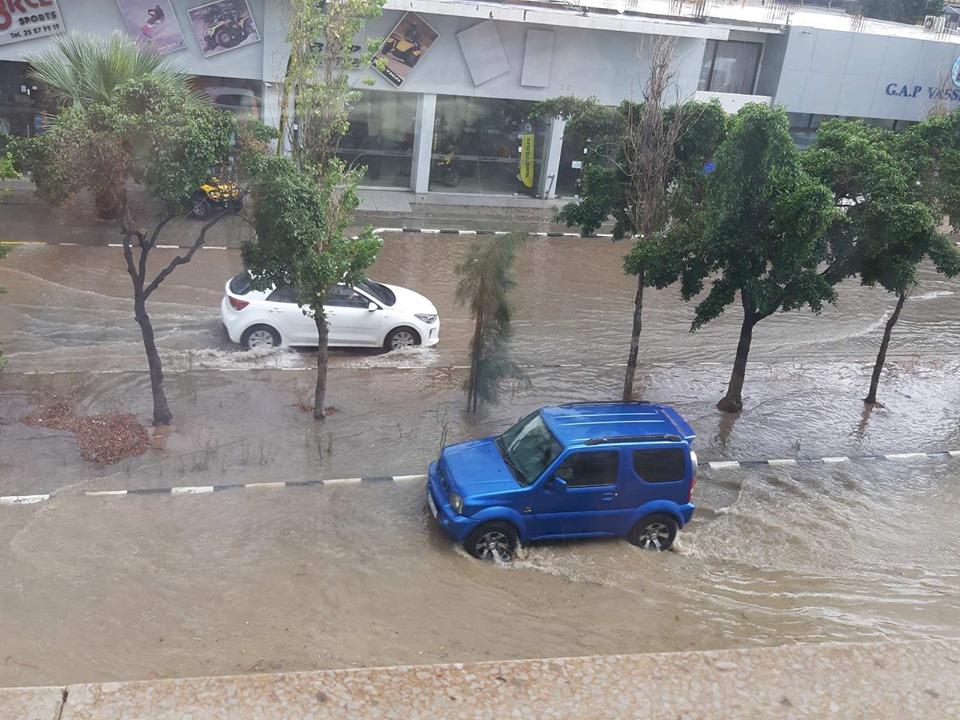 Ο Θησέας συνεχίζει κανονικά το πέρασμά του, αφού λόγω των έντονων βροχοπτώσεων στη Λεμεσό, οι δρόμοι έγιναν ποτάμια.