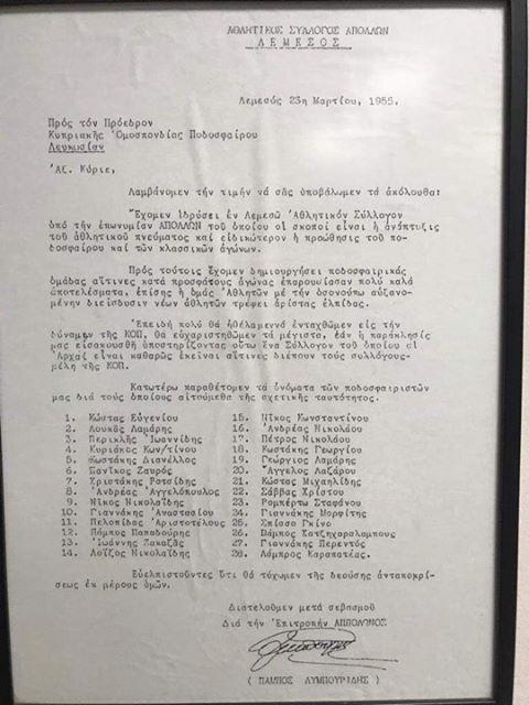 Ο Πρόεδρος, τα μέλη του Διοικητικού Συμβουλίου, ο Γενικός Διευθυντής και το προσωπικό της Εταιρείας Απόλλων Ποδόσφαιρο (Δημόσια) Λτδ, εκφράζουν τα ειλικρινή τους συλλυπητήρια για τον θάνατο του Κώστα Ευγενίου ο οποίος ήταν ο πρώτος τερματοφύλακας της ομάδας μας την αγωνιστική περίοδο 1954-55.
