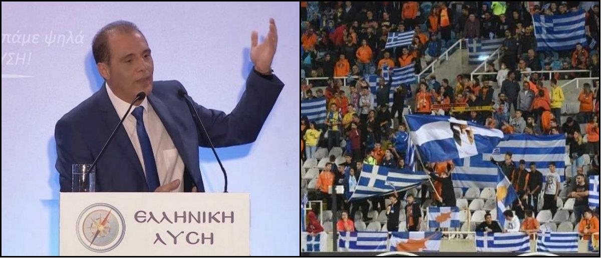 Με αφορμή τις 6500 σημαίες που κυμάτισαν στις εξέδρες του ΓΣΠ, ο Κυριάκος Βελόπουλος, ανάρτησε στα Μέσα κοινωνικής δικτύωσης φωτογραφία με την κερκίδα του ΑΠΟΕΛ από το παιχνίδι με την Καραμπάχ.