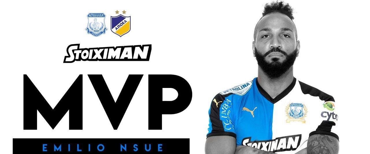 Ο πολυτιμότερος ποδοσφαιριστής του ισόπαλου ντέρμπι με τον ΑΠΟΕΛ, αναδείχθηκε ο Εμίλιο Ενσούε, σύμφωνα με ανακοίνωση που εξέδωσε ο Απόλλωνας.