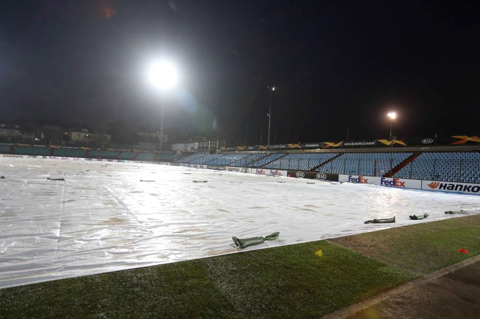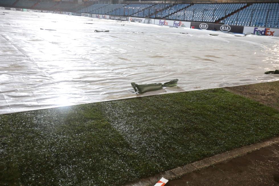 Όπως μπορείτε να δείτε στις φωτογραφίες που ακολουθούν, ο αγωνιστικός χώρος του γηπέδου είναι καλυμμένος με αδιάβροχα πανιά, ενώ και ο καιρός στη χώρα είναι βροχερός. Ως εκ τούτου, οι γαλαζοκίτρινοι δεν είδαν το γρασίδι που τοποθετήθηκε για το αυριανό (28/11) παιχνίδι.