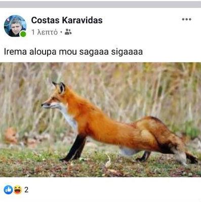 Ο πρόεδρος της ομάδας της Κατωκοπιάς Κώστας Χριστοδούλου «Καραβίδας», μάλιστα, ανήρτησε φωτογραφία στον λογαριασμό του στο Facebook, με φόντο μια αλεπού, με το εξής μήνυμα: