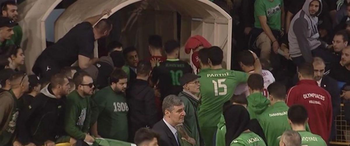 Διακοπή πριν καν αρχίσει στο ντέρμπι... αιωνίων. Συγκεκριμένα και ενώ το ματς ήταν 5-3 υπέρ του Παναθηναϊκού, η αστυνομία έκανε χρήση δακρυγόνου στην είσοδο του κλειστού. Αμέσως η ατμόσφαιρα έγινε αποπνικτική και φυσικά υπήρξε διακοπή του ντέρμπι.